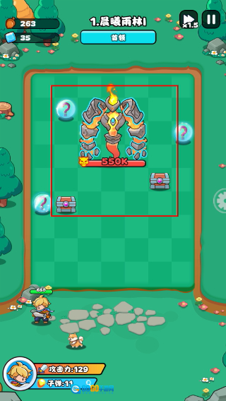 3、遇到带【550%】血条的BOSS,利用周围宝箱等资源备战。