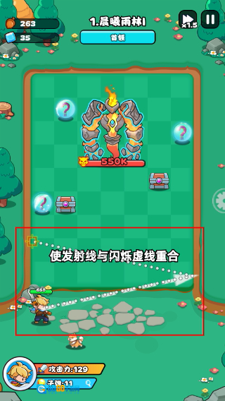 4、调整发射线与闪烁虚线重合,精准攻击首领BOSS,提升战斗效率,助力通关该关卡。