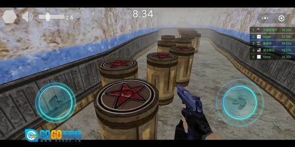 2、在游戏里,玩家会手持枪支弹药,以第一人称视角开启一系列射击挑战。把CS的跳台玩法做成小游戏,确实十分有趣,也很有新意。