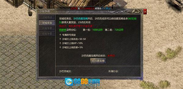5、攻城战结束后,沙巴克藏宝阁将随之开启,所属行会的成员可前往该藏宝阁,通过击杀秘宝狻猊获取丰厚奖励。