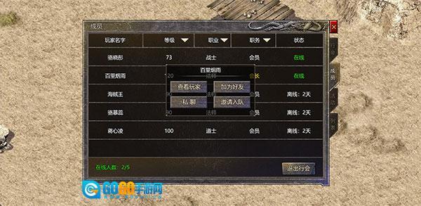 2、通过成员列表可以查看行会的成员构成,还能进行好友添加或快捷组队操作。
