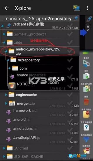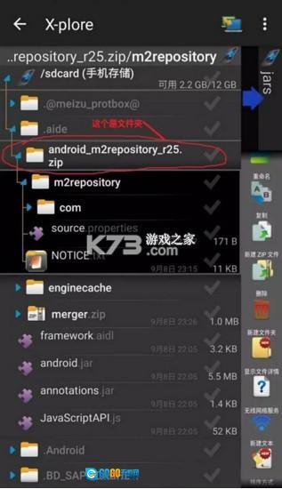 首先在本站安装好aide汉化版,安装完成后就能开展基础的安卓开发工作;要是需要用到安卓扩展库的相关功能,则还得准备android_m2repository_r25.zip这个扩展包,具体的操作步骤如下:
