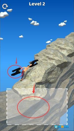 1、通过滑动屏幕来操控角色,借助登山镐交替进行岩壁攀爬,要留意把控挥镐的力度与角度,躲开途中的障碍物并持续向上攀登。