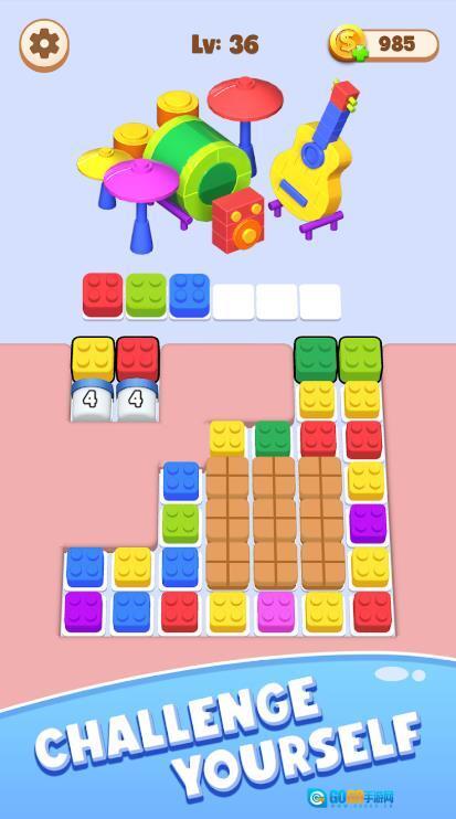 3. 丰富的主题关卡与每日任务,内容持续更新,告别单调。1、通过匹配颜色相同的方块来获取建造所需的材料。