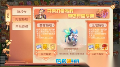 特权可让玩家在游戏内使用充值卡时不受上限限制,并且每天都能领取价值648元的礼包!