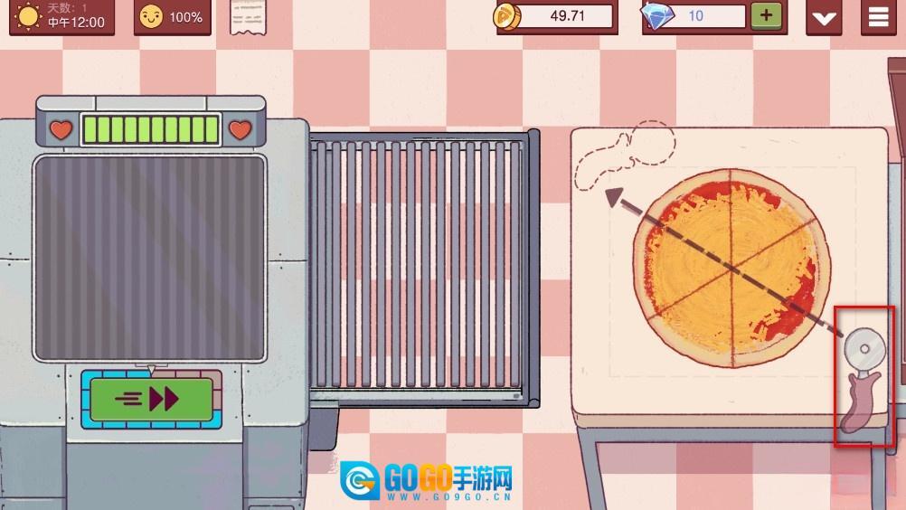 长按道具,按照虚线指引,切出均匀大小的披萨