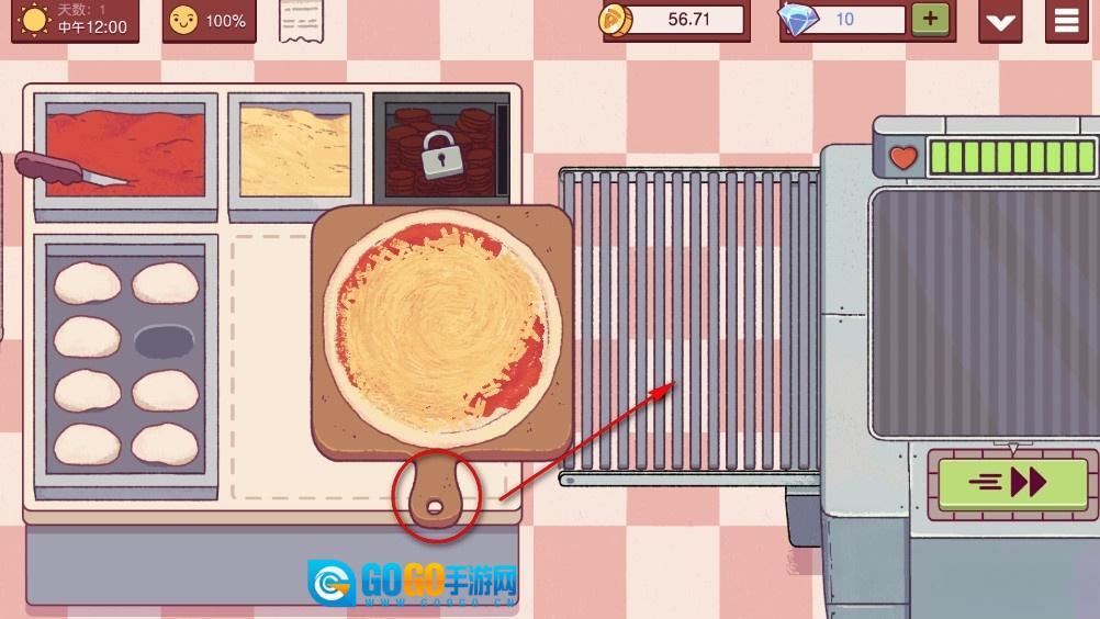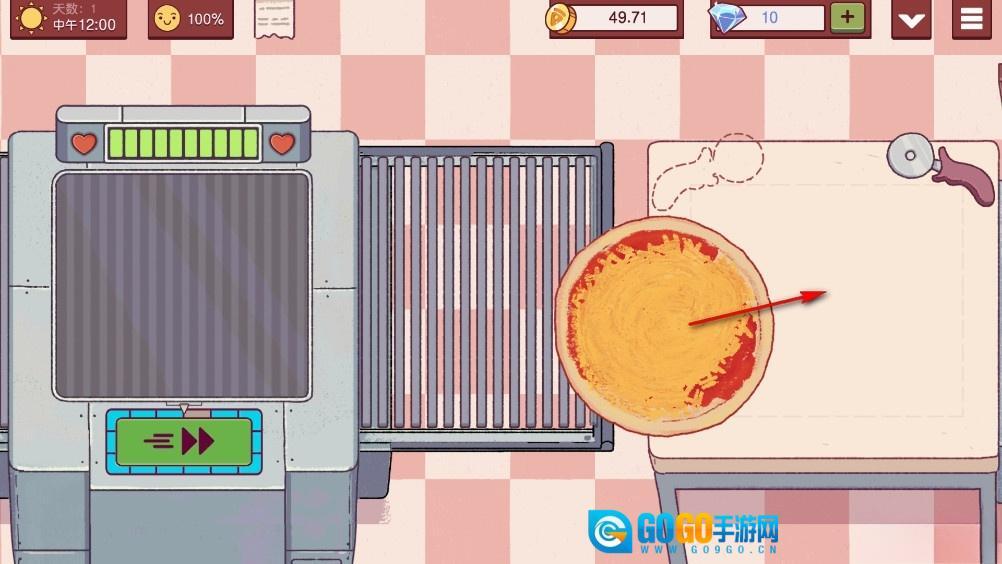 等待一会儿,比萨到传送带尾部时,拖放到桌子上,进入下一环节