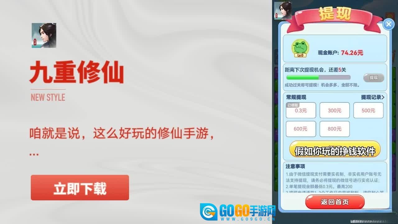 个人觉得九重修仙游戏是真的可以赚钱,虽然需要看广告,但会奖励一些红包劵给用户,虽然不是实打实的,新人的话一般都会有25元红包,但并非是可以全部兑换出来的。