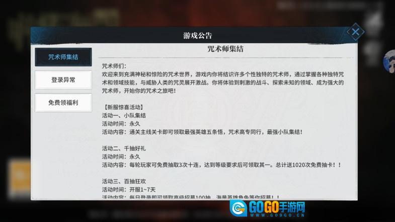 《咒术共鸣游戏》作为一款深度还原原著画风与剧情的RPG作品,玩家将化身为四脚阳实,携手伙伴组建队伍抗击恶魔,守护世界的和平。游戏具备高自由度的战斗体系、多样的角色互动机制与社交功能,还有七组礼包码(VIP666、VIP777……SVIP888)等待玩家领取!通过策略性的阵容搭配,即可感受紧张刺激的咒术对抗!