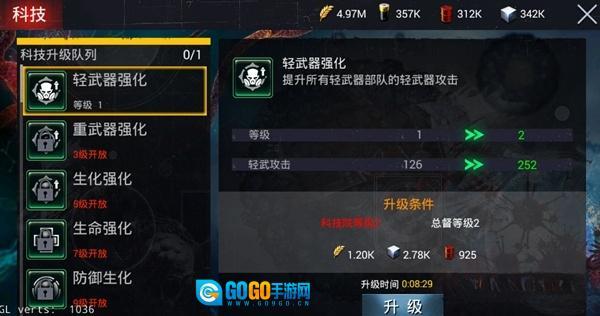 随着科技院等级的提高,能够解锁更多的兵种技能。玩家可依据自身部队的实际需求,消耗基础资源来升级对应的兵种技能,从而增强部队的作战实力。