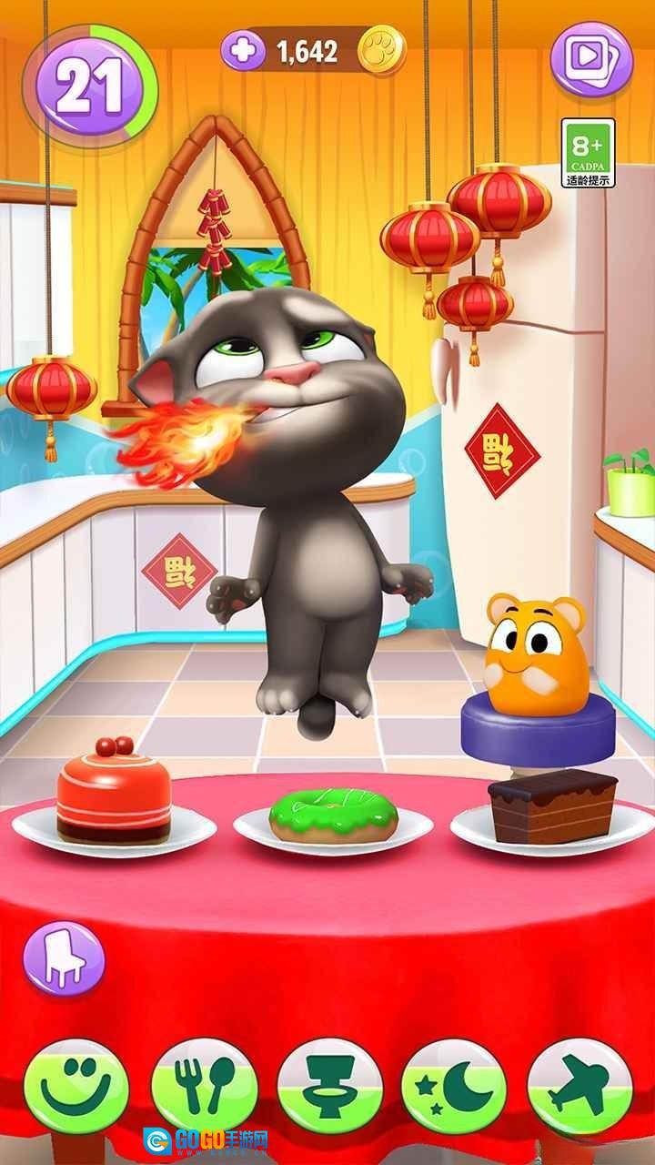 拟真电子宠物养成:汤姆猫具备多样表情与动作反馈,饥饿时会撒娇、困倦时会打哈欠,玩家要通过喂食、哄睡等互动来满足它的需求,从而建立起专属的情感联系。