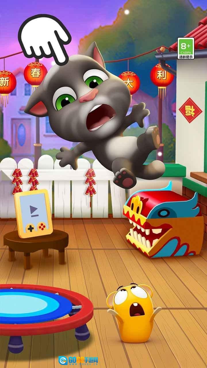 动态玩具互动:秋千、蹦床等玩具可实时操作,汤姆猫会根据玩家的操控呈现真实的物理反应,像弹跳、摇晃等动作,为玩家带来沉浸式的玩耍体验。