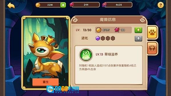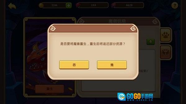 PS: 要是你不小心把魔兽培养错了也不用慌,我们有重生功能可以帮你,能返还一部分消耗的材料,让你没有后顾之忧。
