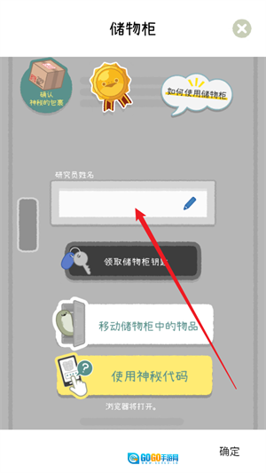 2接下来会进入储物柜的解谜环节,点击研究员姓名的输入框,输入自己的名字。