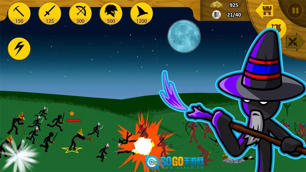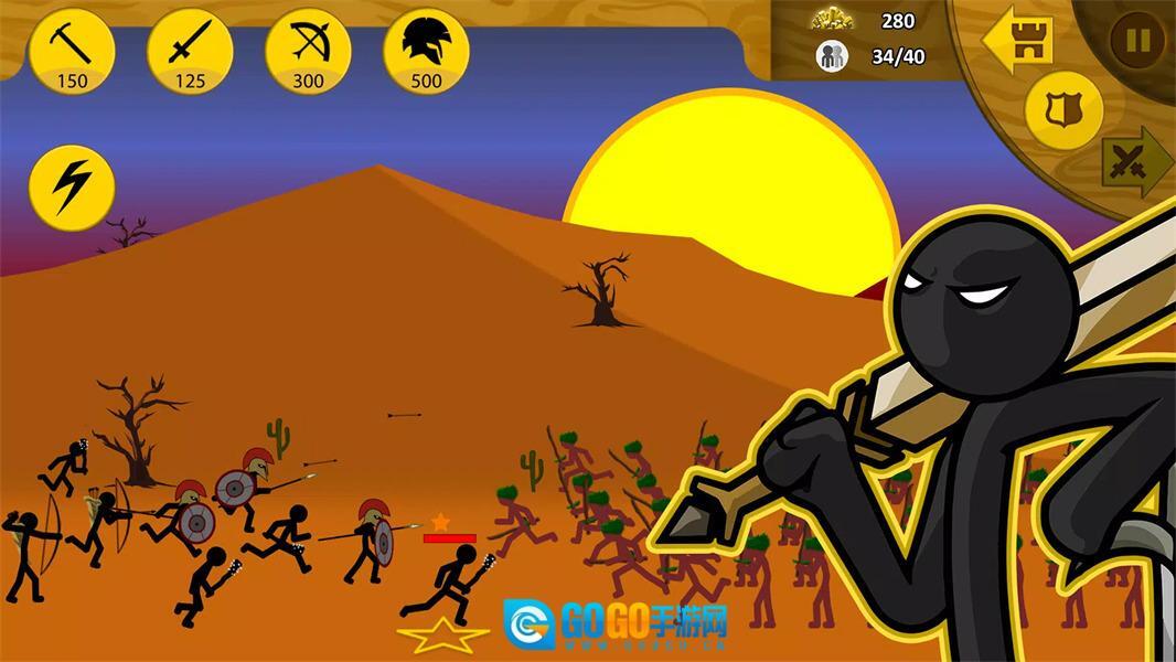 1.前期资源储备:开局时优先安排1-2名矿工开采黄金,与此同时建造2-3名剑士来抵御敌方的突然袭击。等资金积累到500金币的时候,再补充弓箭手,以此构建远程输出的核心力量。要避免过早训练像巫师、巨人这类高成本的单位,防止出现资源供应中断的情况。
