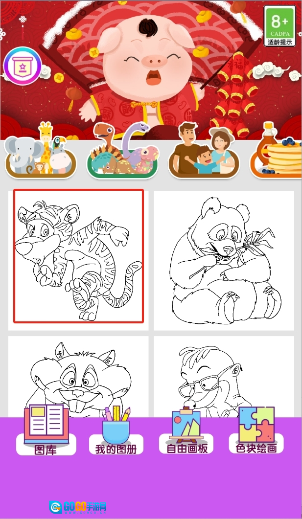 1、选择绘画对象:孩子可以从游戏提供的众多小动物和植物图案中选择自己喜欢的绘画对象,开始创作之旅。