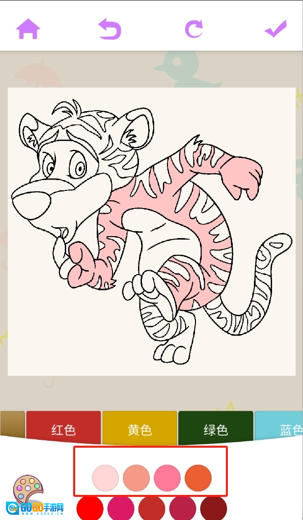 2、丰富素材选择:游戏内有大象、蜗牛、鲜花、小猫、绵羊等众多有趣的小动物和植物图案,满足孩子多样化的绘画需求。