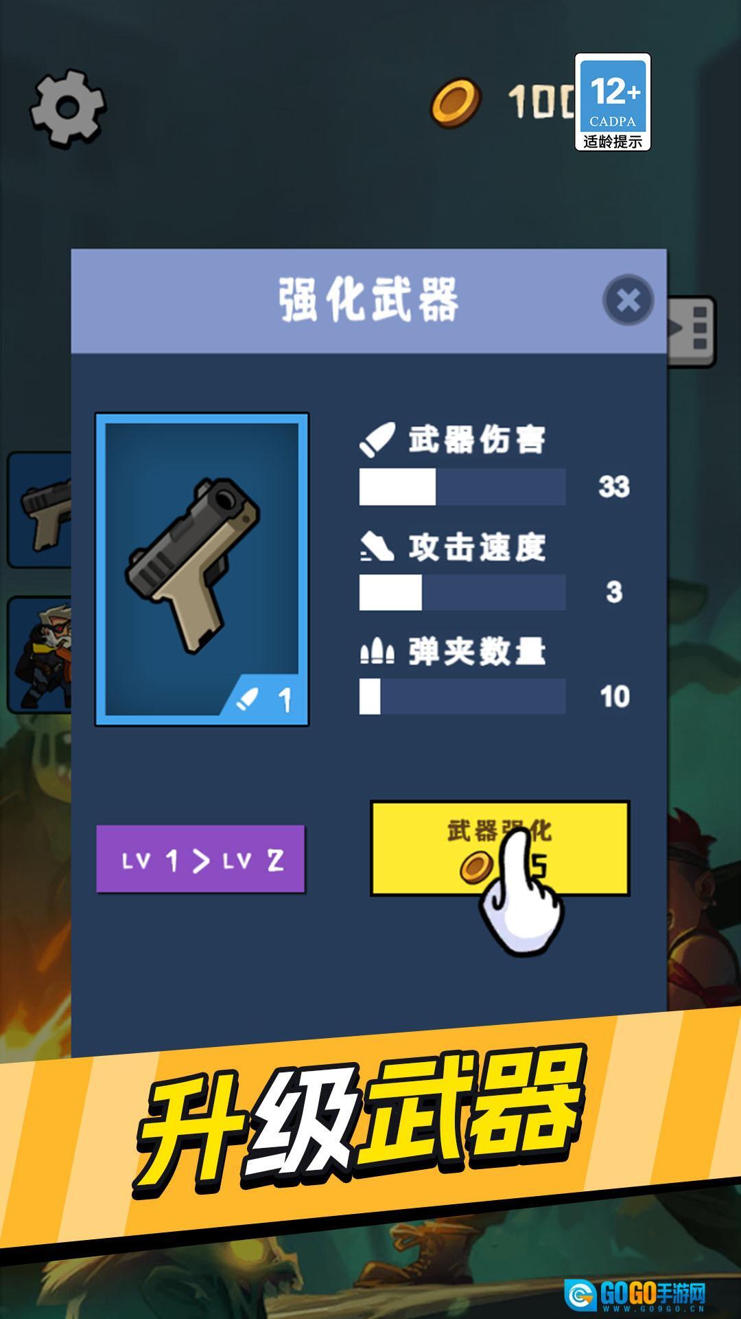 2、成功清除所有怪物即可获得金币奖励,玩家需用金币升级武器与技能,以此提高角色的战斗效率。