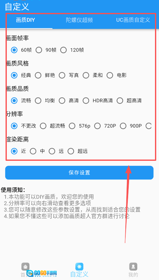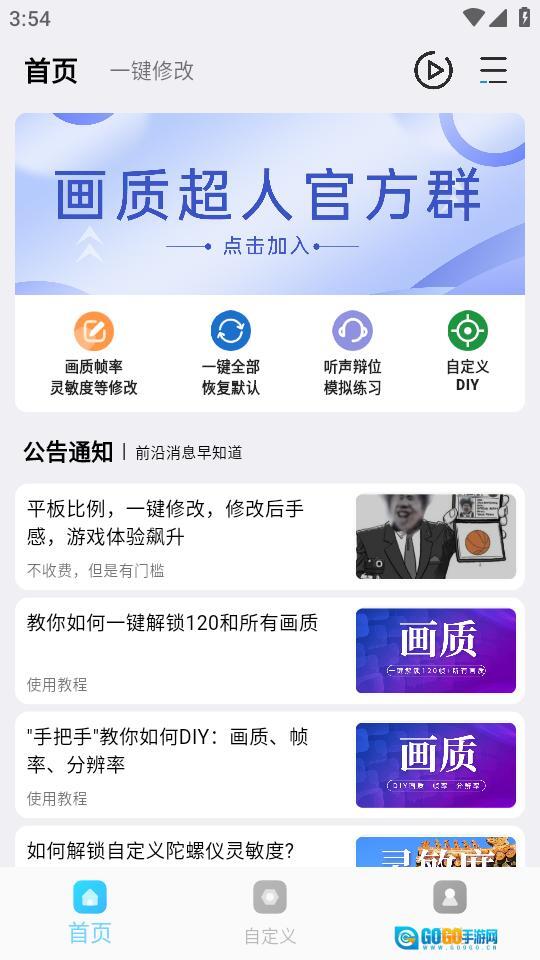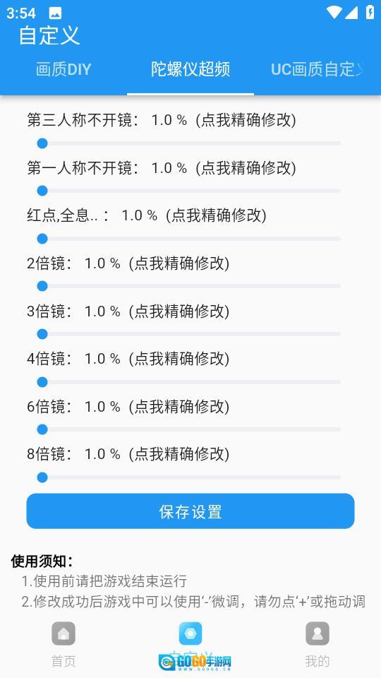 3、要是你对修改不太明白,可以查看首页的“使用教程”,里面会教你如何解锁画质和修改陀螺仪灵敏度这些复杂操作。
