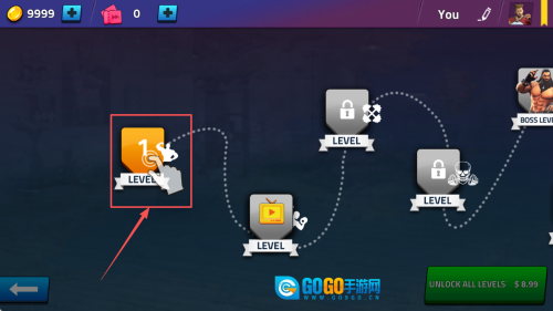 4、开启关卡:进入关卡选择界面后,点击首个关卡即可开启你的格斗挑战之旅。