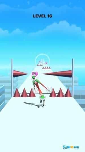 1、开启闯关准备:选定目标关卡,熟练掌握怪人肢体伸展的操作方式(腿部伸展长按可升高、手臂伸展能延伸更远距离),仔细观察赛道初始阶段的障碍布局,明确需通过灵活变形来完成关卡挑战。