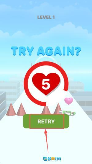 4、失败重试机制:当出现“LEVEL1 TRYAGAIN?5”的提示时,点击“RETRY”按钮即可重新发起挑战。