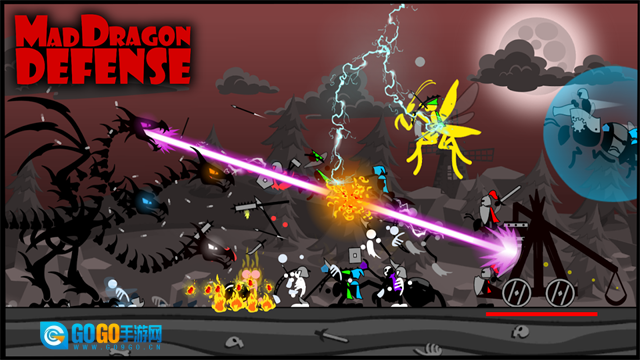 2、创新滑动瞄准机制,需根据抛物线原理调整魔法释放角度,精准打击敌军与战争机器,兼顾操作趣味性与策略考量。
