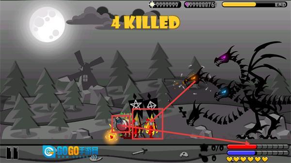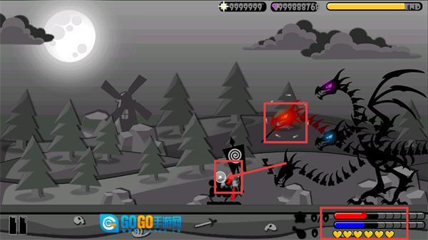 3、当龙释放【红色火焰】技能时,需快速操控单位躲避,同时关注下方【红心生命值】,及时补给避免减员。