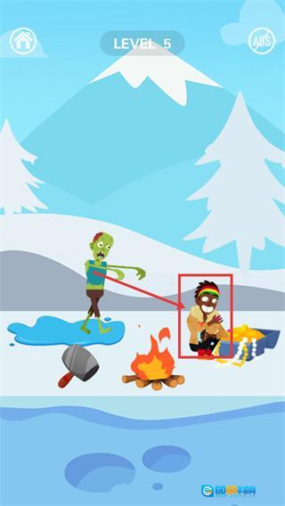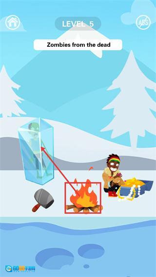 2、进入【LEVEL-5】后,触发【Zombies-from-the-dead】剧情,需先操作篝火道具解锁冰封僵尸以推进流程。