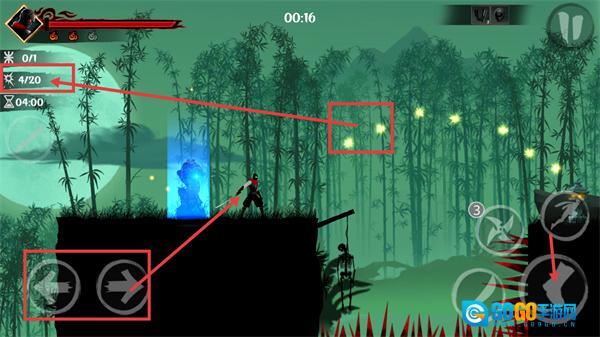 1、使用【←→】方向键控制角色移动,靠近场景里的发光点来收集道具,以此推进【4/20】的进度,要留意限时【04:00】的要求。