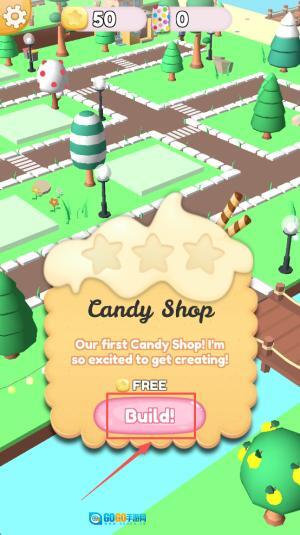 2、建造商店:在建造界面中,点击FREE按钮,花费50糖果建造第一间Candy Shop。