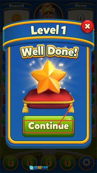 4、完成【Level-1】后,点击【Continue】按钮可领取奖励并进入下一个关卡。