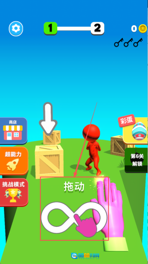 1、进入关卡后,点击屏幕控制橡皮人移动,遇到障碍物时,通过调整点击力度与时机,让橡皮人快速穿越。