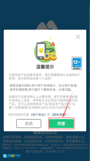 1、同意协议:点击“同意”按钮,同意隐私政策并继续。