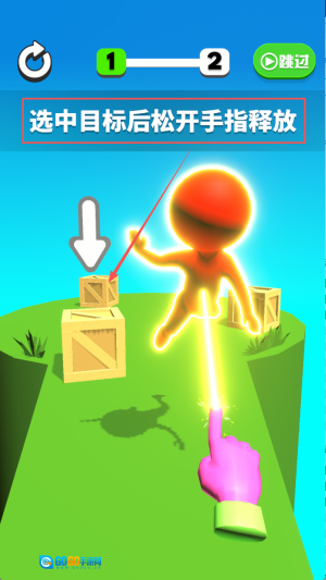 3、操作角色:选中目标后松开手指释放,控制角色跳跃。