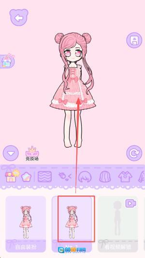 3、解锁内容:点击“看视频解锁”按钮获取高阶部件,之后就可以着手搭配服装与造型了。