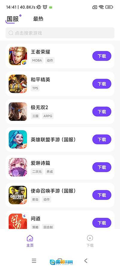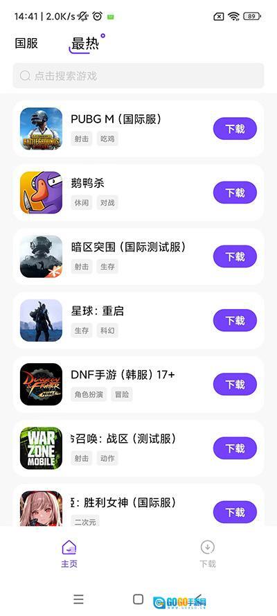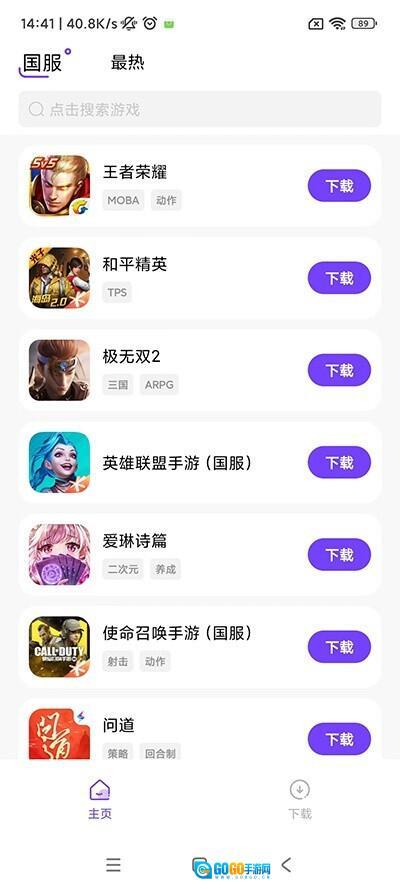 2、进入游戏盒子的主页界面,这里汇聚了大量热门的国服游戏,具体可参考图示内容。
