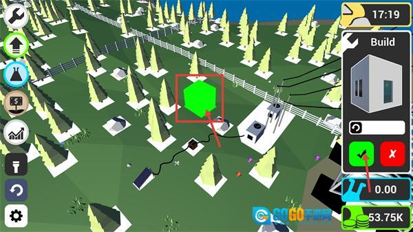3、进入建造界面,选定建筑后定位绿色区域,点击右侧绿色对勾按钮完成建造,当前53.75K-资源可支撑该操作。