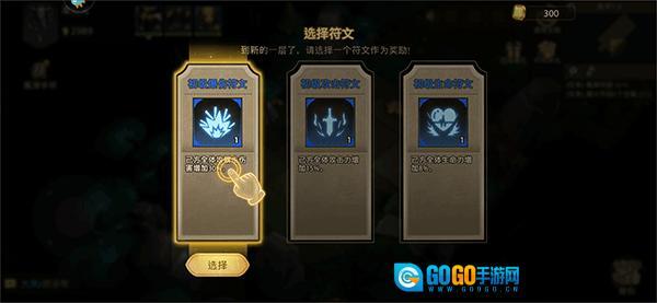 3、进入新的一层时会出现一次符文选择机会,玩家可从三个符文中挑选一个。