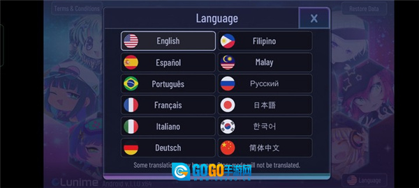 1、启动游戏后,在游戏加载界面的右下角找到“Language”选项,通过它可以将语言设置为中文。