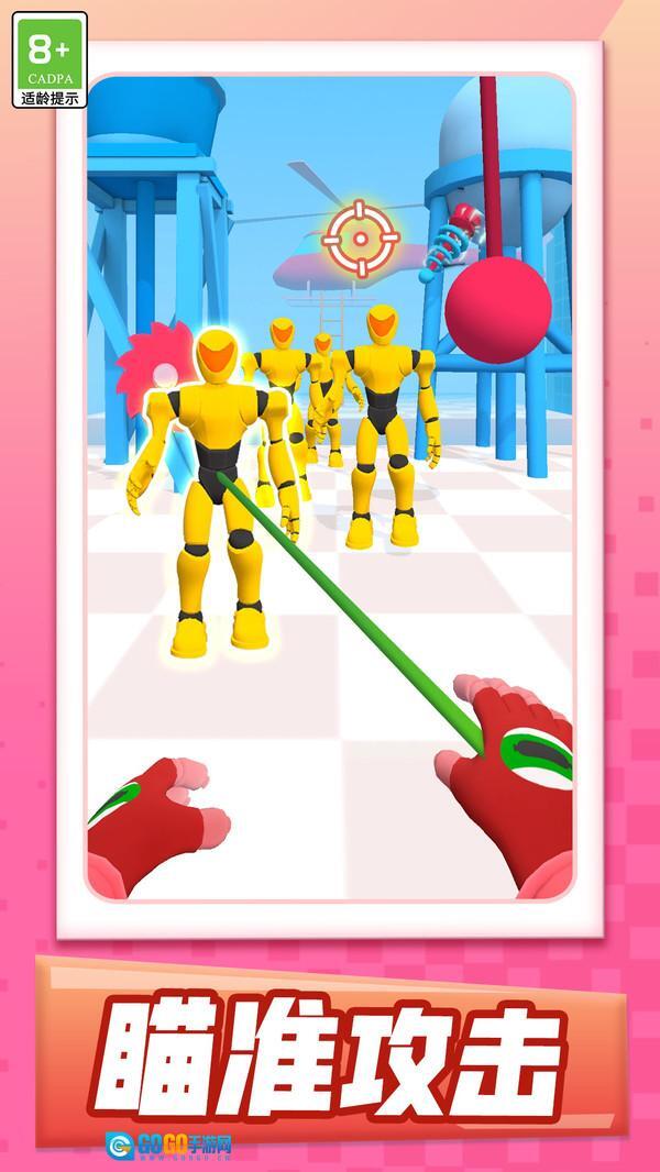 2、操作方式:点击屏幕并拖动手指,以此来调整弹射器的方向与力度,帮助角色顺利穿过障碍物。