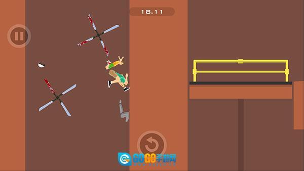 3、游戏操作较为简单,具体操作示意如下:右侧的按钮用于控制前进与停止,左侧的按钮则可调整人物的姿态。