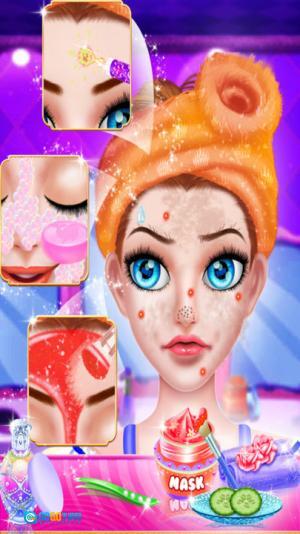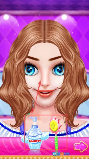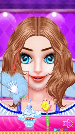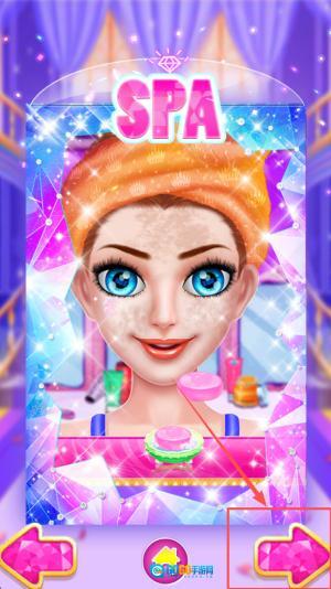 3、接着,按照提示依次完成SPA、洁面、敷面膜、化妆以及换装这些步骤:操作方式是用手指把工具或者服饰拖动到公主身上就行。
