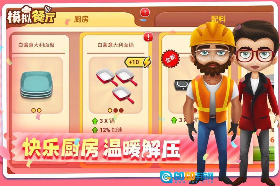 1、自由经营:在《模拟餐厅》里,玩家能体验到自由度拉满的经营玩法,不管是餐厅的装修风格、菜品菜单的设置,还是员工的招募培训以及服务流程的规划,都可以按照自己的喜好与创意来自由安排。不管是想打造充满异域风情的西式餐厅、传承经典的中式餐馆,还是独具特色的小吃店,玩家都能凭借自己的经营策略,打造出属于自己的、独一无二的专属餐厅。