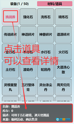 点击道具可以查看详情。