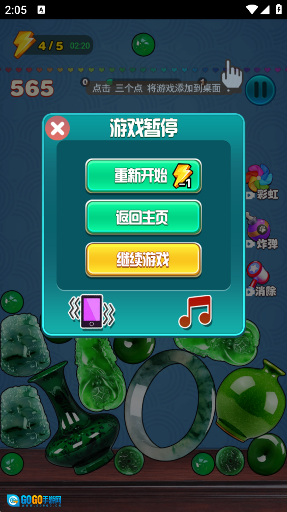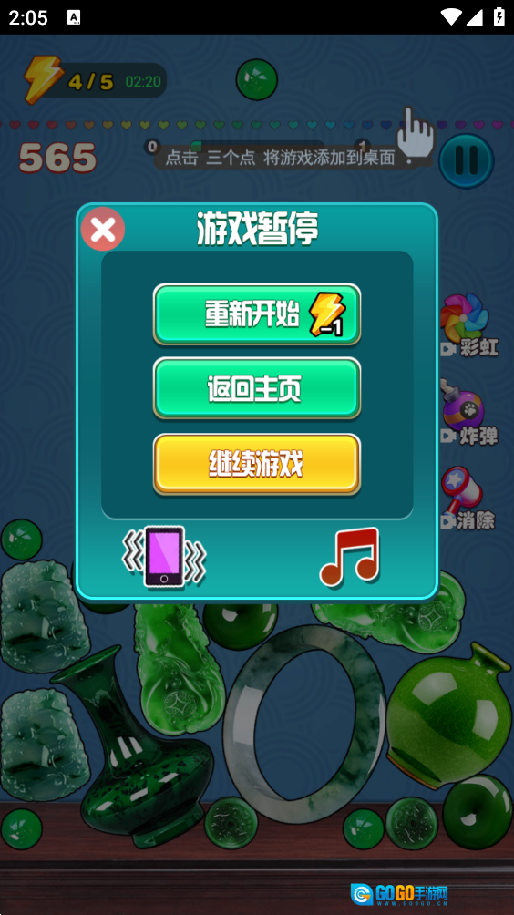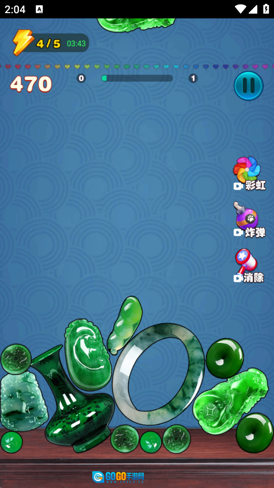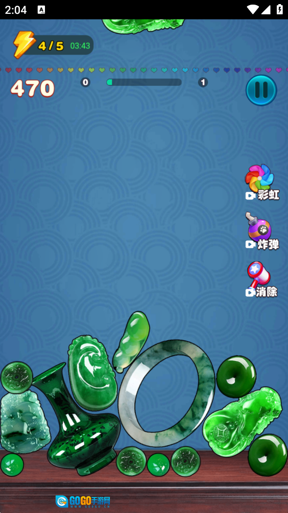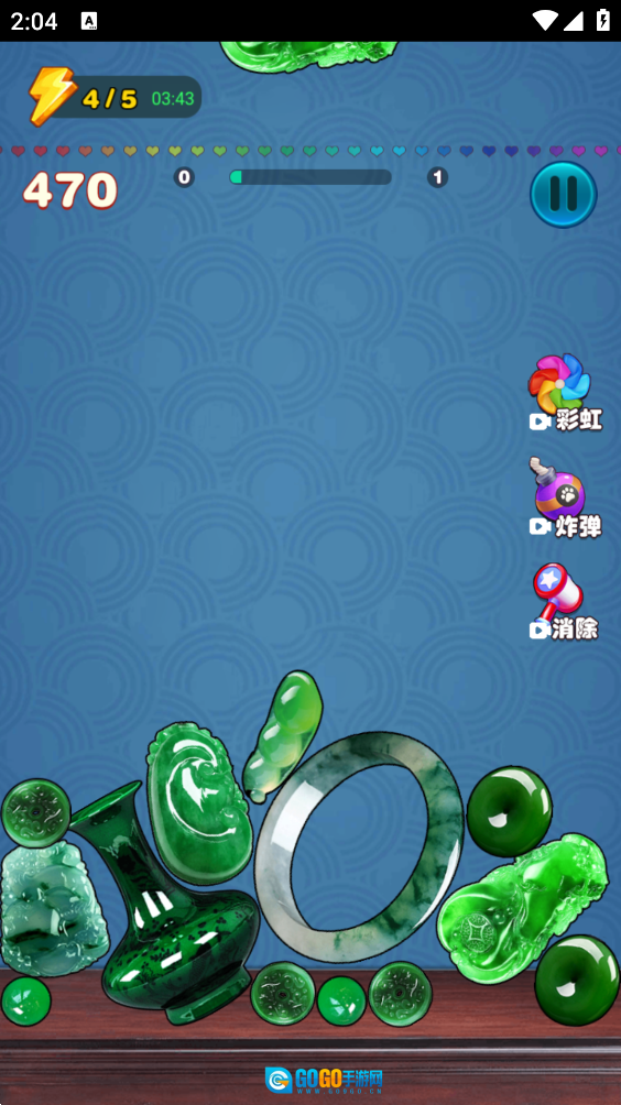 2、玩家需要让它们与底部的玉石发生融合碰撞,从而使底部的玉石合成为一块极品翡翠。