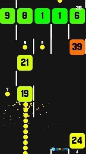 3、接下来,注意方块上标注的26、39这类数字,这些数字代表该方块需要被撞击的次数,你需要借助反弹的方式将所有方块都消除掉。