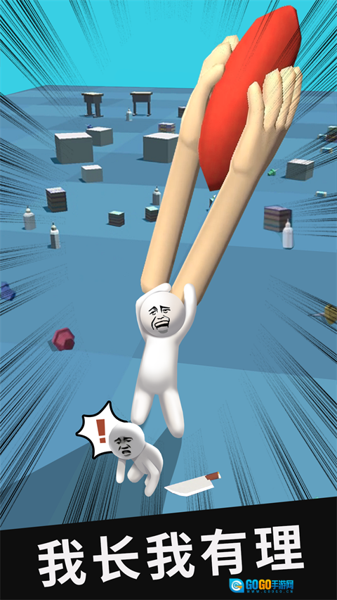 1、核心成长机制围绕“砍击积累长度”展开,无论是砍击敌人、树木还是石头,都能让武器尺寸得到提升,而击杀对手带来的长度增幅尤为明显,这会促使玩家更主动地投入到对战当中。
