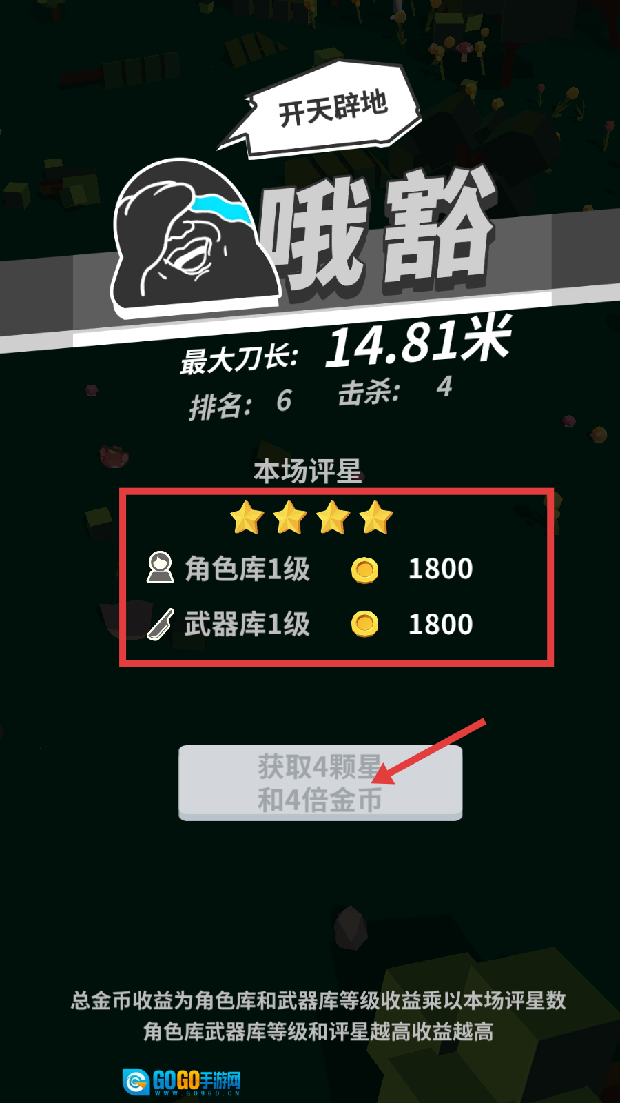 4、战斗结算时可获取【角色库1级-1800】【武器库1级-1800】金币,提高库的等级能够增加收益。