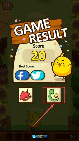 4、最后,当GAME RESULT界面上的Score和BestScore都显示为20时,点击屏幕任意位置就能立即重新开始游戏,挑战更高纪录。